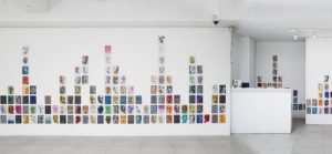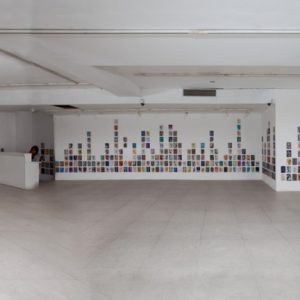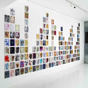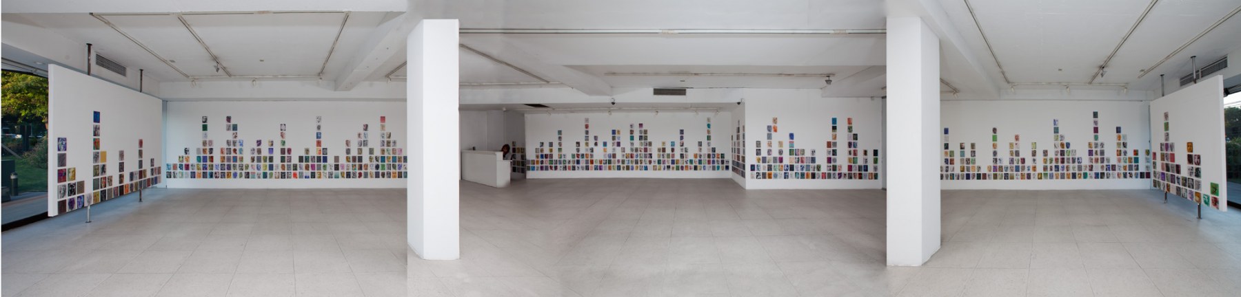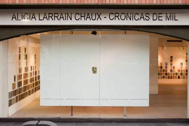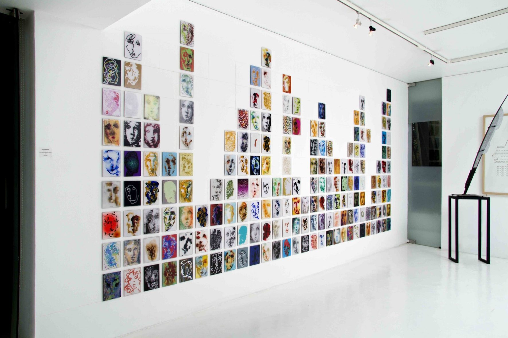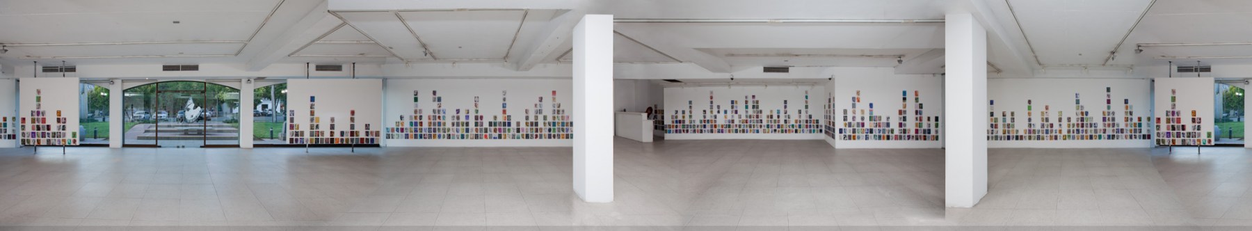 Los muros perimetrales de la sala de la Galería Artespacio se constituirán como soporte de esta avalancha de rostros/máscaras, actuando como mar de fondo o superficie de inscripciones. Así como testigos del registro en este duelo/travesía.