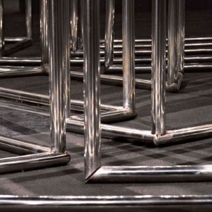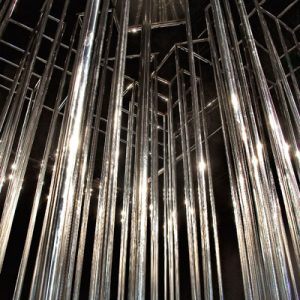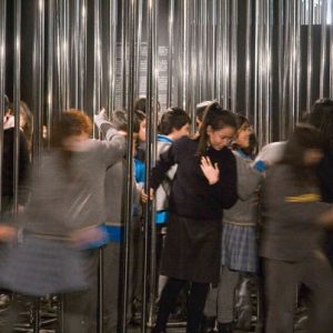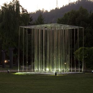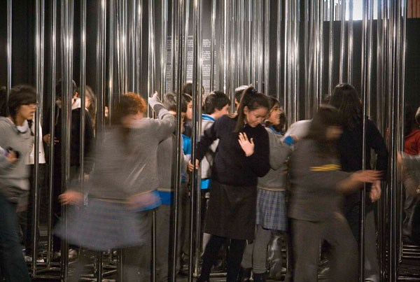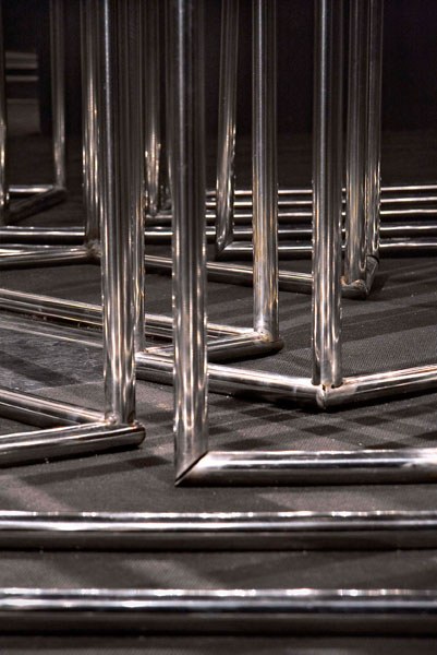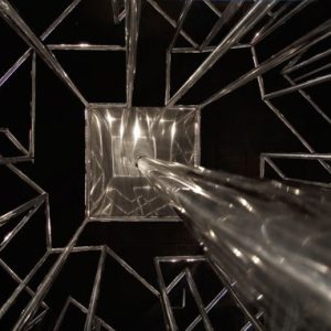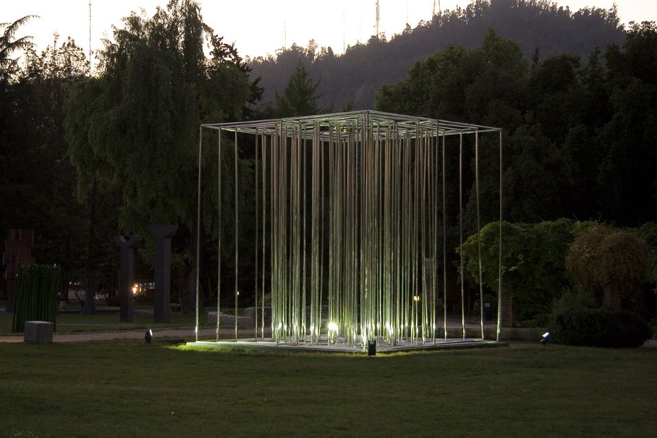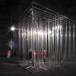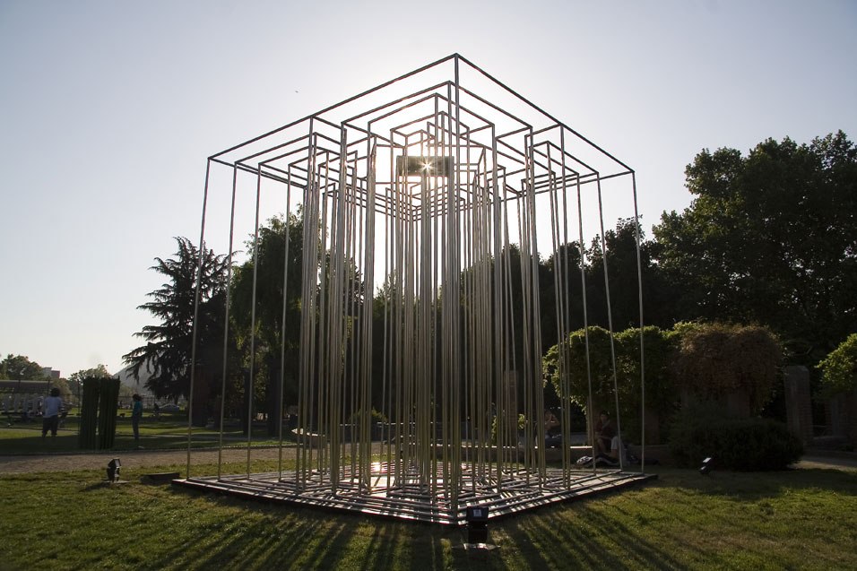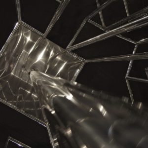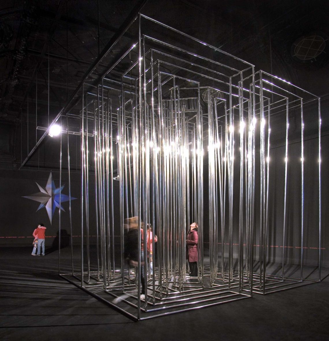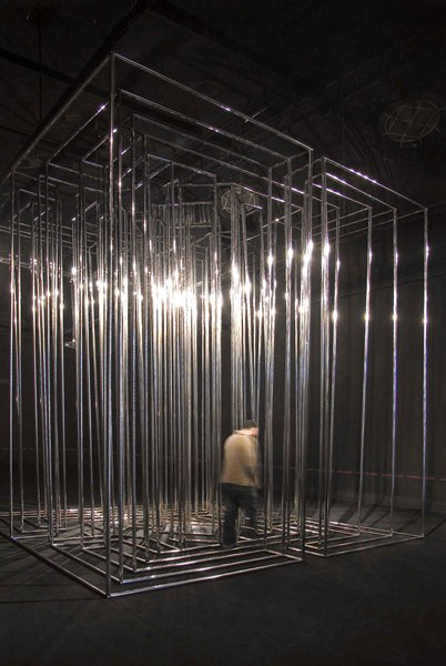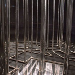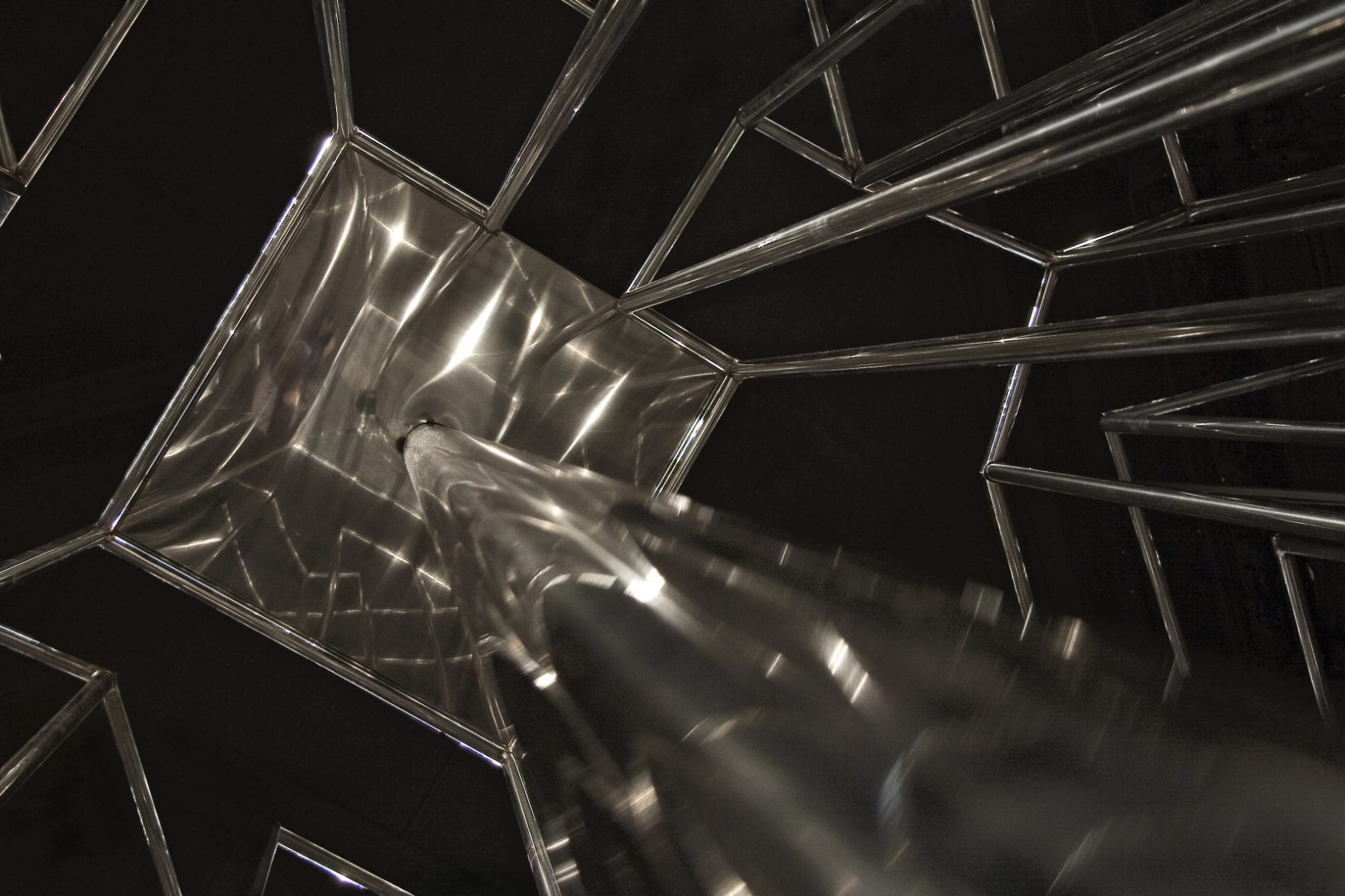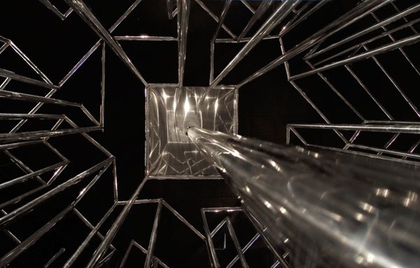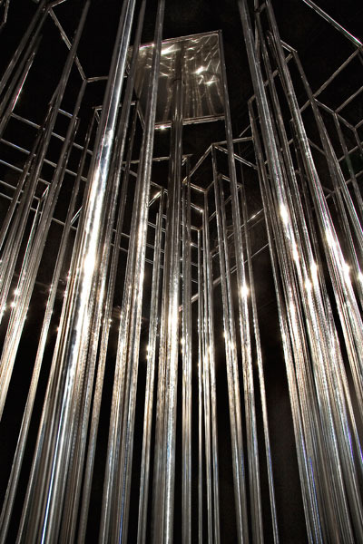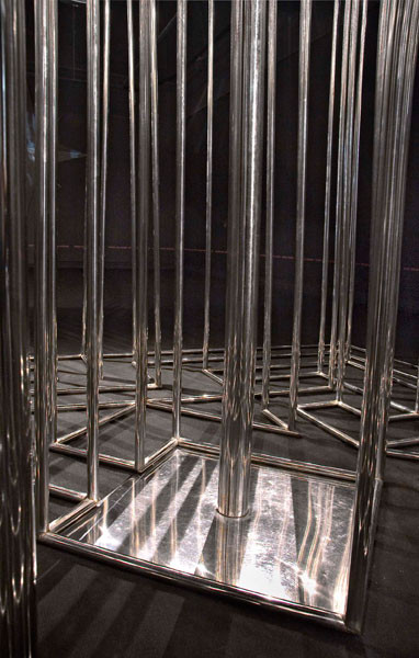 Finalmente si se supedita al juego y oferta misteriosa del laberinto y encuentra su hilo conductor y concepto, verá que es cerrado, sin salida, que obliga muchas veces a desandar los pasos en busca de la meta a conquistar, hasta que arriba y dá con su centro físico y estratégico, jerarquizado por un tubo de mayor grosor el cual le permite al asirse levantando la cabeza, cuestionar su estancia en ese punto, descubriendo en su propio reflejo, el real conocimiento de si mismo, simiente de su verdad interior, meta y tesoro. Su propia imagen reflejará este encuentro brillando en un espejo/techo superior y espejo/suelo inferior de acero inoxidable.