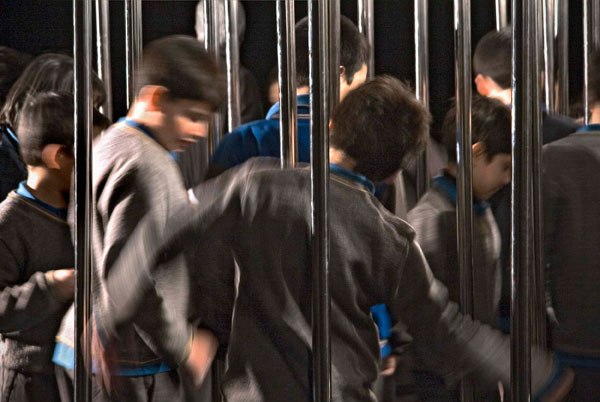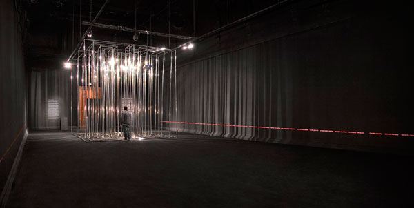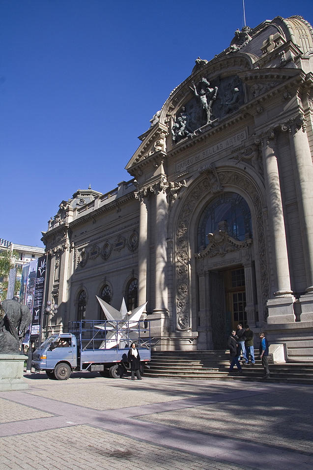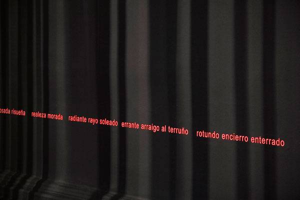 El montaje de la obra constituye la Sala Chile como el espacio virtual en la existencia del hombre, conteniendo el registro de su recorrido.  Estará conformado por: el laberinto/jaula/, la rosa de los vientos con la proyección sobre sus 16 caras de los ropajes y roles que conforman su itinerario y equipaje y las líneas de los versos, en color rojo/riesgo, que recorreran el perímetro de la sala inscritos en la pared como soporte.