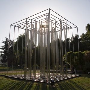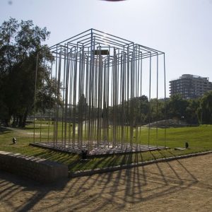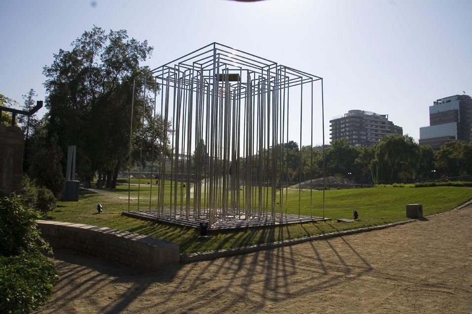 El dado/laberinto/jaula encierra y contiene el recorrido del hombre y sus múltiples opciones.  Lo muestra y permite sus intentos y yerros, sus conquistas y triunfos, sus derrotas y destino final, que viene siendo su propio encuentro. Estará formado por barras tubulares de acero inoxidable cerradas en lo alto de este dado/laberinto/jaula. Estas barras descenderán verticalmente aprisionando al hombre; irán ancladas al piso que reflejará la misma planta del laberinto proyectada en lo alto, conformando así una prisión material y virtual.