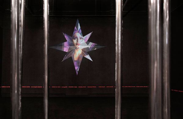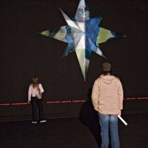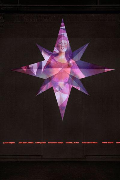 La Rosa de los Vientos guiaba dichas travesías midiendo la velocidad y dirección de sus ráfagas.  Aparecerá por tanto su forma construida en acero inoxidable al fondo de la Sala, reflejando este viaje como también los diferentes vestuarios y máscaras que el hombre asume en su recorrido terrenal.  Este reflejo se presentará por medio de una proyección sobre la Rosa de los Vientos la que desparramará los colores e imágenes  cual espejismo caleidoscópico.