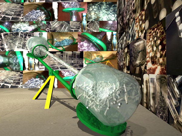 Estará también presente el concepto de espacio/tiempo, representado metafóricamente por un símil al “reloj de arena”.Con su gollete cual colador estrecho ejerce el poder de ordenar el cauce de este flujo de movimientos, seleccionar al elegido para avanzar, quien se detiene, etc.