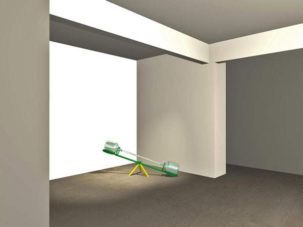 La materialidad de esta instalación se asimilará a los conceptos de juego, con la imagen/presencia de un balancín, que representa los altos y bajos en nuestra existencia con sus respectivas ensoñaciones, aspiraciones e ilusiones y los vacíos y pérdidas que sobrevienen como contrapartida.